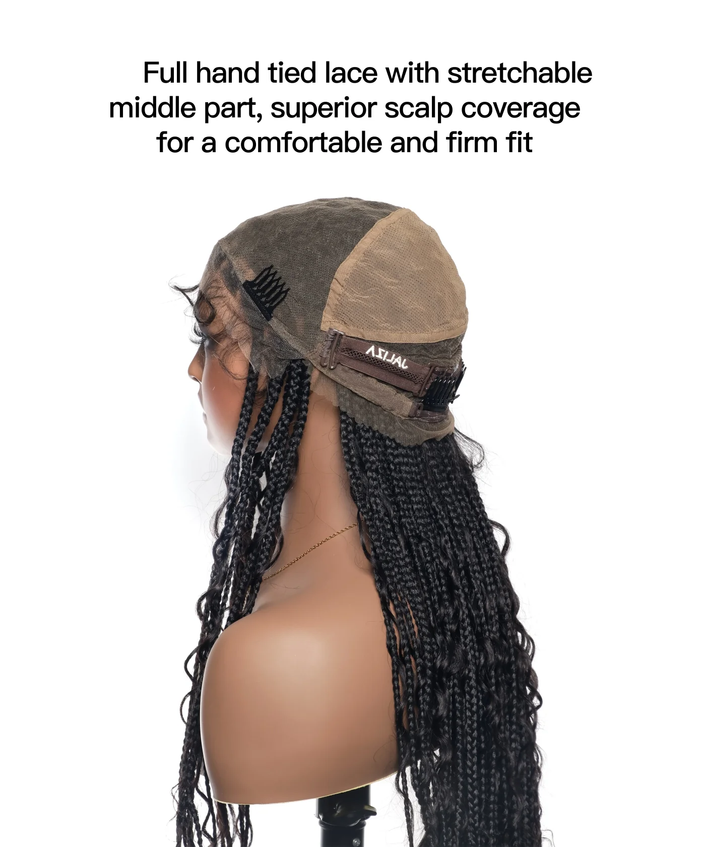 -70%Tangleless Human Hair Boho Curls Knotless Box Braided Wig 32“ HD Lace 100 Strands - Comfort Plus / Inner Splice Stretchable Lace—